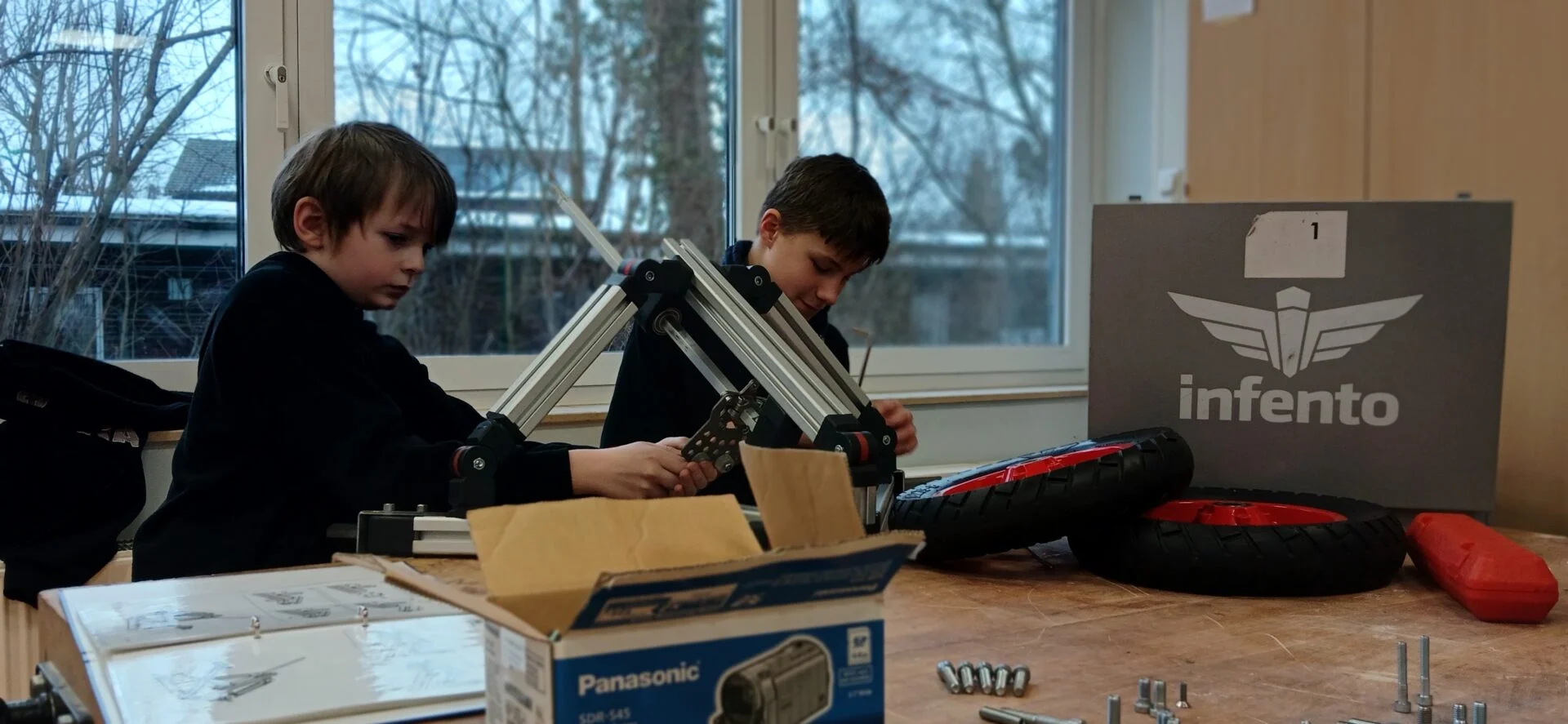 Und wenn ein komplettes Fahrzeug ist, dann wollen sie damit durch die Schule brausen. Dazu brauchen sie noch nicht einmal viel Muskelkraft, denn die Fahrzeuge können elektrifiziert werden, also mit Strom fahren. Und dem Team, das als erstes sein Fahrzeug fertigstellt, gibt Herr Strauß dann zusätzlich noch Döner aus!