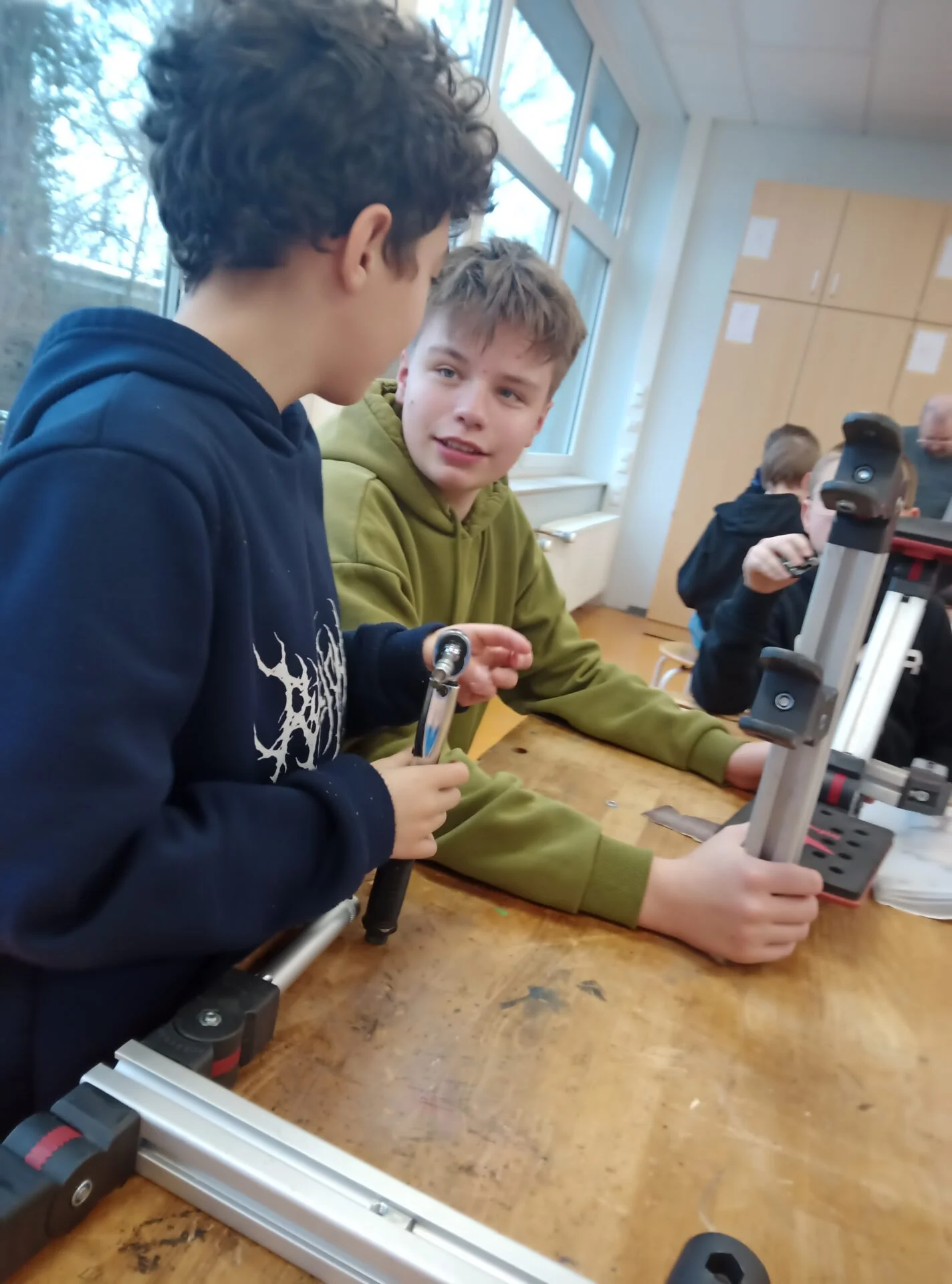 Und neben Geduld lernt man auch noch andere Tugenden, die man in der Arbeitswelt später gut gebrauchen kann: „Teamwork und gute Zusammenarbeit sind sehr wichtig. Einer hält die Teile fest, einer schraubt, und ein Dritter guckt, ob auch wirklich alles passt und richtig angebracht ist.“